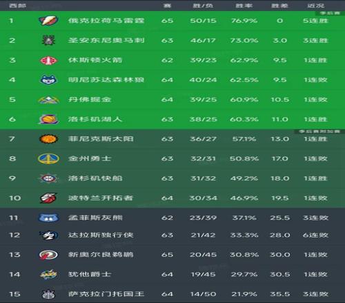 ±±¾©Ê±¼ä3ÔÂ8ÈÕ£¬NBAͨÀýÈü´ó²¿·ÖÇò¶ÓÖÁÉÙ¾ÙÐÐÁË62³¡½ÇÖð£¬Ê£Ï²»µ½20³¡Í¨ÀýÈüÒѾ­Êdzå´Ì½×¶ÎÁË£¬ÎÒÃÇ¿´¿´½ñÈÕÎ÷²¿µÄ×îÐÂÅÅÃû£¡