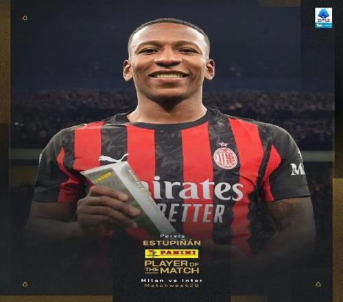 意甲第28轮角逐 ,埃斯图皮尼安打进米兰生涯首粒进球 ,米兰1-0击败国米 。赛后埃斯图皮尼安也中选了本场角逐最佳球员 。