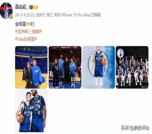高诗岩更新社媒发文:全明星X3,亚洲前三的侧颜  。