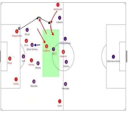 阿森纳使用加布里埃尔在近门柱的优势,他的头球后蹭找到了在后点的特罗萨德,后者完成得分。富勒姆主帅马尔科·席尔瓦赛后坦言,加布里埃尔“跳得太高,险些不可能阻止”。