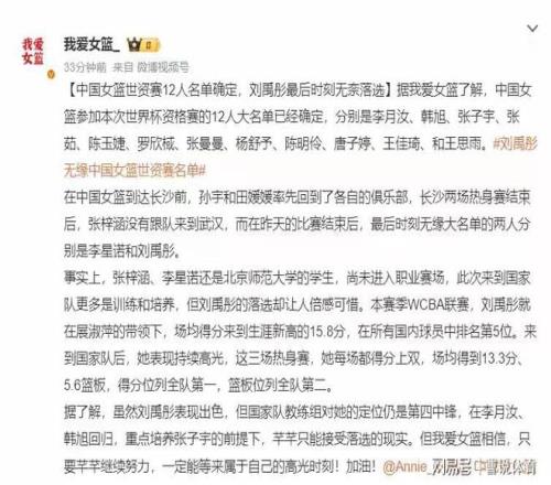 场均13.5分,5.6篮板,得分全队最高的刘禹彤被弃用,宫鲁鸣咋想的?万众瞩目的女篮世预赛即将打响,相信许多球迷都看到了中国女篮官宣了最终的十二人台甫单,其中大废物刘禹彤被弃用,引起了许多球迷的热议,刘禹彤具备精彩的实力优势,同时打球很是有激情,被许多球迷喜欢,现在落选宫鲁鸣的球队,许多球迷替刘禹彤感应委屈。