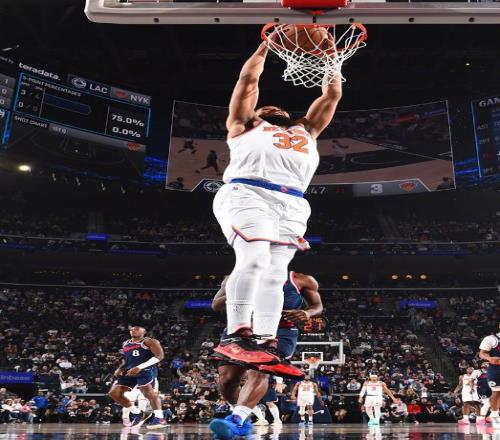 休赛期提升二阵容实力的纽约尼克斯,新赛季的整体体现不俗,前65场通例赛战罢,以41胜24负的战绩排名积分榜第三位,不过强强对话的体现升沉未必,最近两场角逐先是以39分的重大优势血洗丹佛掘金,随后又以13分的劣势输给了勒布朗詹姆斯缺阵的洛杉矶湖人 。