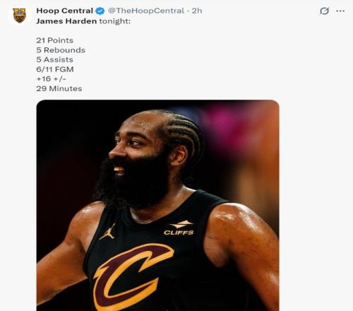 哈登在加盟骑士后,他登场的角逐9胜2负,他场均19.3分5.0板7.8助,掷中率46.4%,三分掷中率43%,罚球掷中率82%。