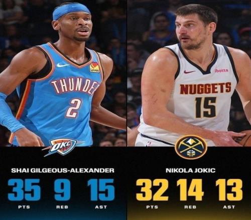 更恐怖的是SGA已经一连第126场得分20+,追平了上古大神张伯伦在1963年创立的一连126场砍下至少20分NBA历史最长纪录。作为当今同盟现役第一人,亚历山大绝对是实至名归!至于约基奇同样打出统治级体现,19投12中,三分6中3,砍下32分14篮板13助攻的三双数据。但在亚历山大绝杀的映衬下,这位三届MVP得主也只能黯然离场。