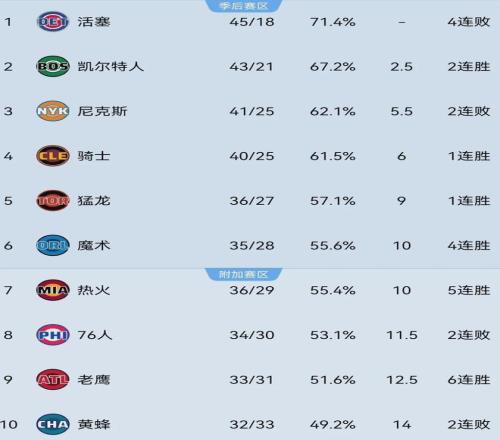 本赛季至今 ,热火取得36胜29负战绩排名东部第七 ,已抹平与第六的魔术(35-28)胜场数 ,且仅落伍第五的猛龙(36-27)1个胜场 ,大有希望锁定一个直通季后赛名额。