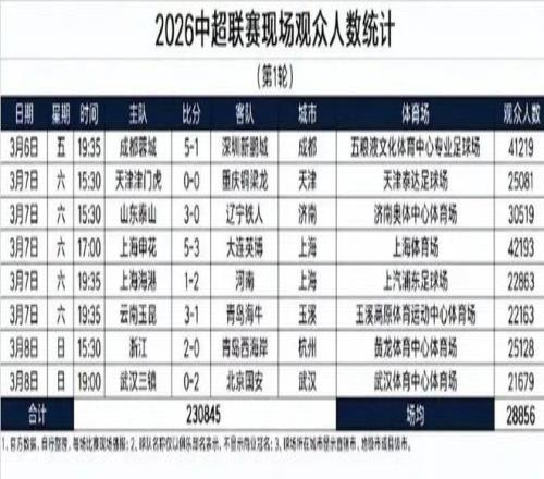 8³¡½ÇÖðÏÖ³¡¹ÛÖÚÈËÊý×ܼÆÎª230845ÈË £¬Æ½¾ùÈËÊý28856ÈË £¬ÖµµÃÒ»ÌáµÄÊÇ £¬Î人ÈýÕòÏÖ³¡¹ÛÖÚÈËÊý½ÏÉÏÈü¼¾9880µÄƽ¾ùÊýÓÐÁ˱¼ÌÚ £¬¶øº£¸ÛµÄÉÏ×ùÂÊÒ²±ÈÉÏÈü¼¾Æ½¾ùÖµ¸ßÁ˽ü4000ÈË¡£ºÍÉÏÈü¼¾±ÈÕÕ £¬2025Öг¬Ê×ÂÖ½ÇÖðËùÓÐÏÖ³¡ÇòÃÔΪ217392ÈË £¬³¡¾ùÉÏ×ù27174ÈË £¬ÕûÄ곡¾ùÉÏ×ùÂÊÔòΪ25754ÈË £¬2026Èü¼¾Ê×ÂÖÊý¾ÝÎÞÂÛ½ÏÖ®ÕûÄêͬÆÚÕÕ¾ÉÕûÄêÆ½¾ù¶¼ÓÐÒ»¶¨ÌáÉý¡£