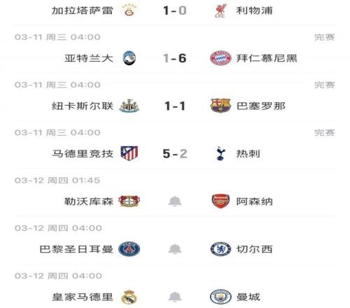 接下来明日还会有曼城、切尔西、阿森纳继续给这项赛事争体面。相比之下,曼城、切尔西难度太大了,对皇马、巴黎很难讲,输了也不希奇。只有阿森纳对勒沃库森时机很大,他们可能会是英超唯一的“荣光”。