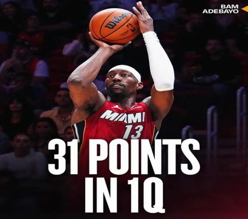 第一节角逐 ,阿德巴约就火力全开 ,单节打满12分钟 ,投篮16中10 ,三分8中5 ,罚球7中6 ,拿下31分3篮板1抢断1盖帽 。