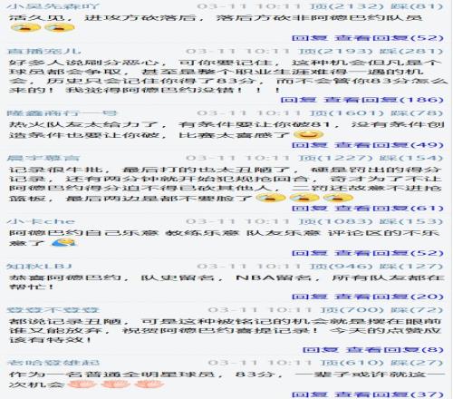 最终,阿德巴约砍下83分9篮板3助攻2抢断2盖帽,单场43罚(36中)突破科比的历史纪录。