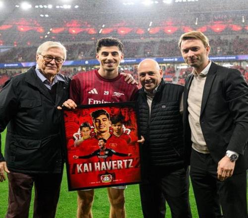在今天破晓举行的欧冠八分之一决赛首回合角逐中,勒沃库森主场1-1战平阿森纳,赛前,勒沃库森为哈弗茨举行了简短的致敬仪式。