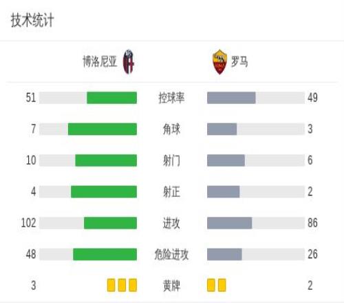 第71分钟 ,马伦助攻 ,佩莱格里尼破门扳平比分 ,博洛尼亚1-1罗马