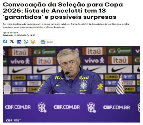 ÉÐÓÐ3¸öÔ £¬2026ÄêÌìϱ­¾Í½«¿ª´ò¡£3ÔÂ13ÈÕ £¬°ÍÎ÷ýÌåestado͸¶ £¬°ÍÎ÷¹ú¼Ò¶ÓÖ÷˧°²ÇÐÂåµÙ £¬½«18ÃûÇòÔ±ÁÐÈëÌìϱ­²ÎÈüÃûµ¥ÖС£ÉÐÓÐ8¸öÃû¶î £¬°²ÇÐÂåµÙ½«¼ÌÐø¿¼²ì¡£ÄÚÂí¶û²»ÔÚ¡°×¼ÈëÃûµ¥¡±Ö®ÁÐ £¬Ììϱ­Ô¶¾°²¢²»ÇåÀÊ¡£