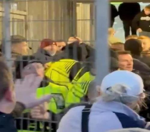 ÓÐάÀ­ÇòÃÔ´ó½Ð¡°²»Òª¡± £¬ÁíÒ»ÃûÇòÃÔÔò˵×Å¡°ÄãÃǻᱻץµÄ¡± £¬ÊÔͼ×èÖ¹³åÍ»½øÒ»²½Éý¼¶ ¡£
