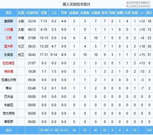 ¼ªµÏ27·Ö8°å15Öú2¶Ï¡¢²¼ÔóÀû˹22·Ö6°å1Öú2¶Ï2ñ¡¢ÌØÀס¤Çí˹18·Ö4°å6Öú¡¢Ã×ÀÕ15·Ö9°å1Öú¡¢Àí²é×È15·Ö4°å1Öú¡¢Ê·Å®Ê¿14·Ö4°å¡¢µÏÁÖ¶òÄ·12·Ö5°å7Öú¡¢°Â¶û²¼ÀïÆæ4·Ö1Öú¡¢ºÓ´åÓ»Ô3·Ö1°å3Öú