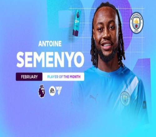 5场角逐3球1助,曼城冬窗新援塞门约中选英超2月最佳球员