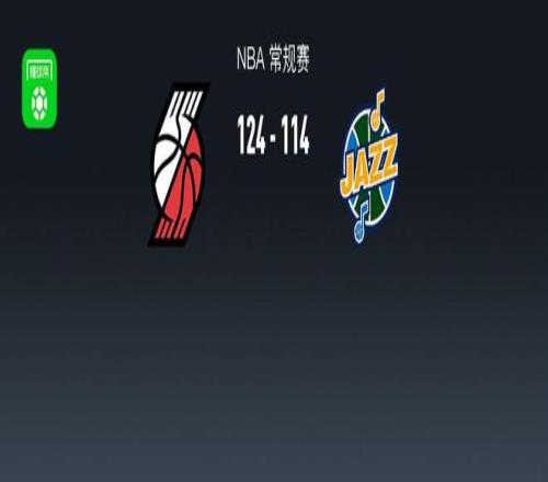 第四节开拓者克林根拿下8分,爵士科利尔拿下8分,最终开拓者124-114战胜爵士