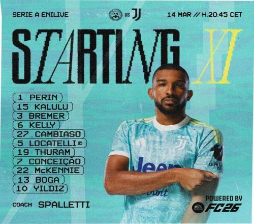 尤文客战乌迪内斯:孔塞桑、伊尔迪兹首发,图拉姆、麦肯尼出战