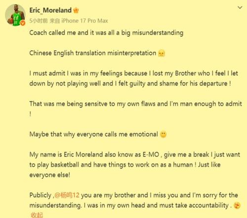 È»¶øÃ»ÓÐÍÆ²âµÄÊÇ£¬¿´ÉÏÈ¥´ó´óßÖßÖµÄĪÀ¼µÂ£¬ÔÚ¿´ÁËÑîÃù¶ÔËûµÄÆÀ¼Ûºó£¬µ±ÌìÍíÉÏÌÉÔÚ´²ÉÏ·­À´¸²È¥È´ÔõôҲ˯²»×Å¡£ÓÚÊÇ£¬Ëû¾ÍÔÚÆÆÏþÒ»µã¶à·¢ÁËÒ»Ìõ¶¯Ì¬»ØÓ¦Õâ¼þÊ¡£Ö÷ÒªÏë±í´ïµÄÊÇ£¬¹ØÓÚÑîÃùÔÚµÚÒ»½×¶ÎÖ´½ÌÁÉÀºÊ±´ú£¬Ëû¹ØÓÚ×Ô¼ºµÄÌåÏÖʱºÃʱ»µ¶ø¸ÐÓ¦À¢¾Î¡£ÓÉÓÚËûÒÔΪ×Ô¼ºCBAÉúÑĵÄ×î´ó¶÷ÈËÑîÃùµÄͻȻ¸æÍË£¬¸úËû²»·óÎȹ̵ĽÇÖð״̬²»ÎÞ¹ØÏµ¡£