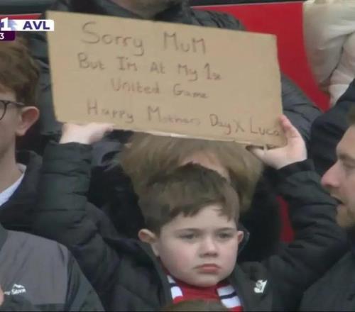 ÔÚת²¥¾µÍ·ÖУ¬Ò»Ãû¿É°®µÄÂüÁªÐ¡ÇòÃÔÔÚ¿´Ì¨ÉÏ¾ÙÆðÒ»¿éÓ²Ö½°å£¬Ð´µÀ£º¡°¶Ô²»ÆðÂèÂ裬µ«ÎÒ½ñÌìÊǵÚÒ»´ÎÏÖ³¡¿´ÂüÁªµÄ½ÇÖð¡£Ä¸Ç×½Ú¿ìÀÖ£¬Ç×Ç×£¡Â¬¿¨£¨ÊðÃû£©¡£¡±