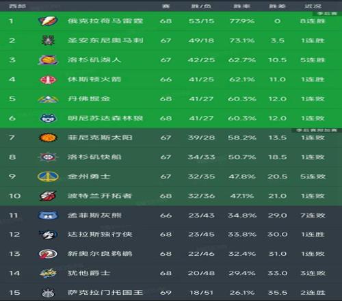 ±±¾©Ê±¼ä3ÔÂ16ÈÕ£¬½ñÈÕµÄNBAͨÀýÈü¿¢ÊÂÁËËùÓнÇÖð£¬ÎÒÃÇ¿´¿´Î÷²¿µÄ×îÐÂÅÅÃû£¡Õâ¸ö½ÇÖðÈÕ£¬³öÕ½Á˽ÇÖðµÄÎ÷²¿Çò¶ÓÓУºÀ×öª116-103սʤɭÁÖÀÇ£¬ÓÂÊ¿107-110º¶¸ºÄá¿Ë˹£¬¿ªÍØÕß103-109²»µÐ76ÈË£¬¶ÀÐÐÏÀ130-120սʤÆïÊ¿£¬¹úÍõ116-111ÏÆ·­¾ôÊ¿£¡