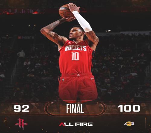 ±±¾©Ê±¼ä3ÔÂ17ÈÕ£¬»ð¼ý92-100²»µÐºþÈË£¬Õⳡ½ÇÖðºó»ð¼ýÓëºþÈ˵Äʤ³¡²îÀ­¿ªµ½1.5¸ö¡£Õⳡ½ÇÖðÐÝ˹¶Ù»ð¼ý¶ÓÊÇÔÚС½ÚÑÆ»ð£¬Õû¸öµÚËĽڻð¼ý¶ÓÖ»»ñµÃ12·Ö£¬×îºóµÄ6·ÖÖÓÀï»ð¼ý¶ÓÖ»Äõ½2·Ö£¬²¢ÇÒÕâ2·ÖÕվɶÅÀ¼ÌØ×îºóµÄË¢·Ö£¬ÓÉÓÚÄÇʱ¼äֻʣÏÂ29ÃëÎÞÁ¦»ØÌìÁË¡£