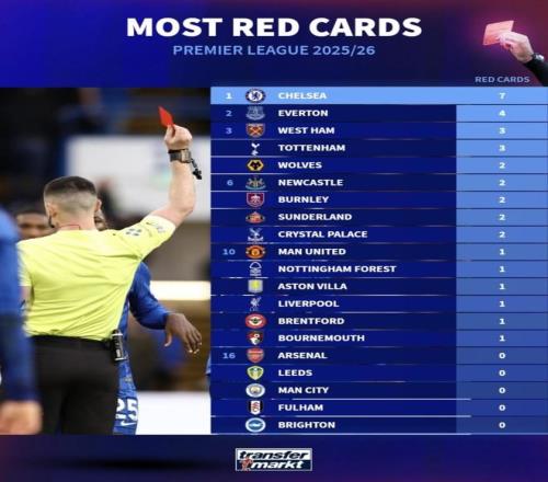 ×î½üÌì¿ÕÌåÓýͳ¼ÆÁËÓ¢³¬µ¥Èü¼¾Çò¶ÓºìÅÆ¼Í¼£¬ÇжûÎ÷ÕâÒ»¼¾ÒѾ­±»ÍƵ½ÁË×îÇ°Ãæ¡£ÄÚÍж԰¢É­Äɱ»·£ÏÂÖ®ºó£¬ÇжûÎ÷µÄµ¥Èü¼¾ºìÅÆÊýÒѾ­×·Æ½Ó¢³¬ÀúÊ·×î¸ß¼Í¼£¬²¢ÇÒÈü¼¾»¹Ã»¿¢Ê£¬ºóÃæÉÐÓнÇÖðÒªÌß¡£Ôٰѱ¾Èü¼¾Ó¢³¬ºìÅÆ°ñ·ÅÔÚÒ»Æð¿´£¬ÇжûÎ÷Ò²ÊÇÏÔןá¿çÒ»µµ¡£ºìÅÆÄܶൽÕâ¸öÌïµØ£¬ÒѾ­²»µ«ÊǼÍÂɲîÕâô¼òÆÓ£¬±³ºó¾¿¾¹ÊǽÇÖðϰ¹ß³öÁËÎÊÌ⣬ÕÕ¾ÉÕâÖ§¶ÓÔÚÒªº¦Ê±¿Ì×Ü»á×Ô¼º°ÑÊ±ÊÆÌßÂÒ£¿£¨Êý¾Ý×èÖ¹2026Äê3ÔÂ3ÈÕ£©