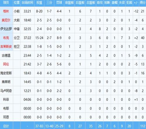该场角逐亚历山大罚球8中7孝顺35分6板9助 ,杰伦布朗罚球14中13砍下34分6板7助。