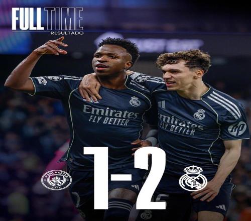 全场角逐竣事 ,曼城主场1-2不敌皇家马德里 ,皇家马德里总比分5-1晋级欧冠8强!
