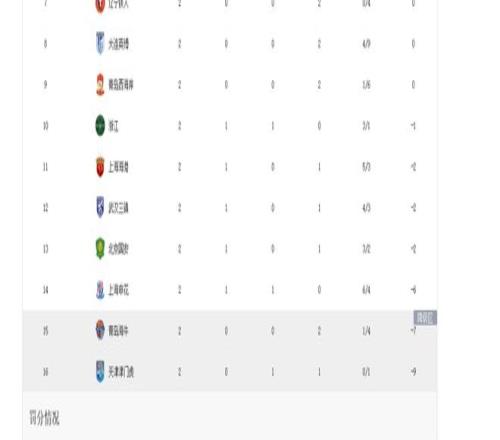 天津津门虎两轮事后负-9分,积分榜垫底;暂时排在他前面的几支球队有申花、国安、海港、浙江等强队,而排名更靠前的,则是本赛季没被扣分、因而提升了运营预算的几支升班马,津门虎本赛季的保级难度同样很大。