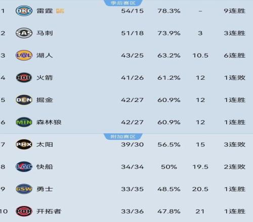 ±¾Èü¼¾ÖÁ½ñ£¬À×öªÕ½¼¨Îª54ʤ15¸º¸ß¾ÓÎ÷²¿&ͬÃ˰ñÊ×£¬Âí´Ì51ʤ18¸ººÍºþÈË43ʤ25¸º½ôËæØÊºó¡£