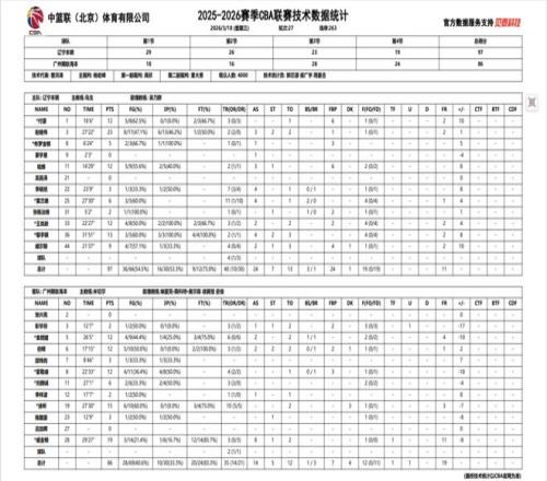 2025-2026赛季CBA通例赛第二十七轮 ,辽宁本钢对阵广州朗肽海本的角逐于18日晚在辽宁体育馆举行 ,辽宁本钢队最终以97:86击败广州朗肽海本 ,豪取“六连胜”。