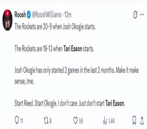火箭记者Bradeaux:求求乌度卡 ,让塔里-伊科回替补席去吧。