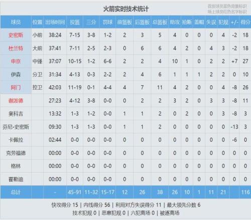 ¶«ÆõÆæ±¾Èü¼¾Ê×½ÚÆ½¾ùÄÜ»ñµÃ11.7·Ö£¬¸ß¾ÓͬÃ˵ÚÒ»¡£µÚÒ»½Ú´òÍ꣬ºþÈË35-26ÁìÏÈ»ð¼ý¡£Õ²Ä·Ë¹»îÁ¦Ê®×㣬µ¥½Ú3ÖÐ3Äõ½8·Ö¡£µÚ¶þ½Ú×îÏÈ£¬Õ²Ä·Ë¹Ò»Á¬Á½¼Çµ¥ÊÖÅü¿Û£¬ºþÈË×î¶àÁìÏȵ½13·Ö¡£Õ²Ä·Ë¹µ¯ÎÞÐé·¢£¬°ë³¡8ÖÐ8¶ÀµÃ18·Ö¡£