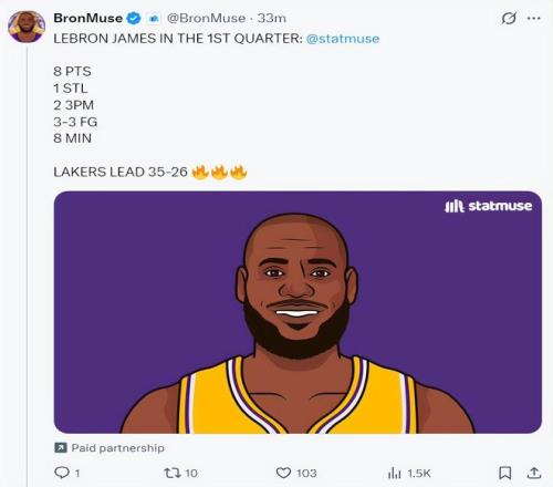 小节詹姆斯一次乐成防守 ,随后老詹一次上篮不中 ,紧接着一次持球的突破掷中 ,詹姆斯快攻再度掷中已经资助湖人领先到6分。