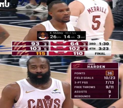 5分08秒公牛缩小到2分 ,哈登后仰中投掷中拉开到5分 ,2分24秒公牛再度缩小到3分 ,哈登空接助攻莫布利暴扣拉开到5分 ,吉迪随后抛投掷中再度缩小到3分 ,哈登在终场前32秒撤步中投又领先5分 ,这一球掷中后时势已经朝着克村倾斜。