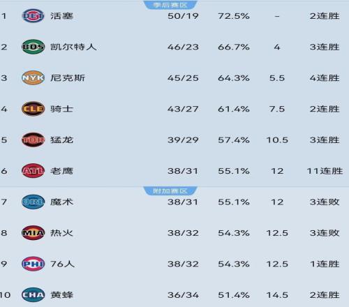 话说老鹰乃进入2026年以来NBA最凶猛的球队之一,近期更是豪取11连胜,本赛季至今战绩为38胜31负排名东部第六,落伍第五的猛龙1.5个胜场,但也有可能随时被第七的魔术反超。