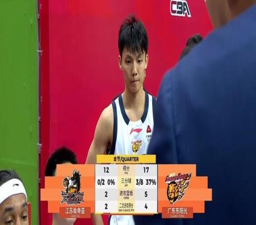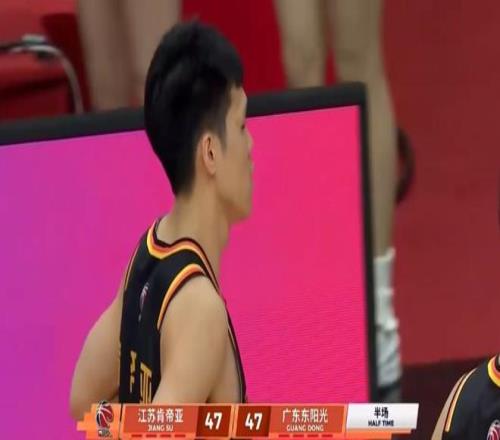 萨林杰还击篮下再吃一饼,小崔接力进场,徐杰助攻奎因扔进三分,贾尔斯2罚也有,广东队攻势还在继续,原来可以继续扩大领先,但没想到接下来广西超跑庞峥麟突然爆发,一连飚进3记三分,幸亏广西老表崔永熙也回应背转身中投+转换三分,同时惠州小外徐杰也有三分进账,半场战罢,江苏47-47战平广东 。