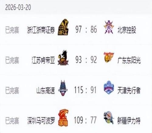 在其他三场同时举行的角逐中 ,广厦男篮以97-86战胜了北控男篮 ,山东男篮以115-91大胜了天津男篮 ,深圳男篮则是以109-77的比分送给新疆男篮一场32分的惨败。
