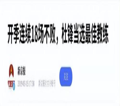 参考资料:新京报《开季一连18场不败 ,杜峰中选最佳教练》