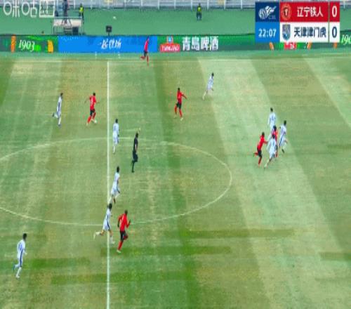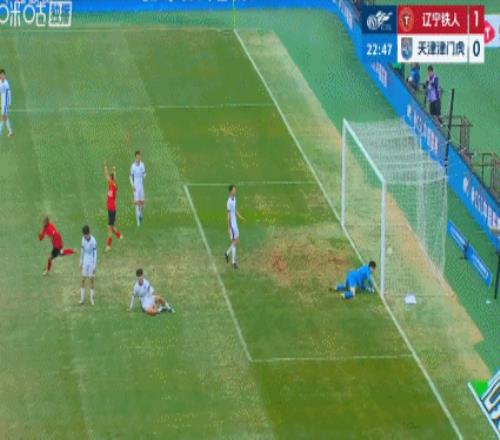 第23分钟 ,中超首球!姆本扎两连击破门 ,辽宁铁人1-0!