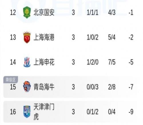 仍然负分的球队当中 ,还包括了上赛季中超的冠亚军上海海港和上海申花 ,两支球队在本赛季最先前都遭遇了罚分 ,可是许多球迷都以为他们会很快挣脱罚分的影响。不过 ,在3轮角逐之后 ,两支球队划分排名联赛倒数第3和第4的位置 ,尤其是海港本轮角逐客场输给了大连英博 ,3轮角逐之后只拿到了1场胜利 ,这样的效果和体现 ,两支球队险些都很难加入到冠军的竞争当中。