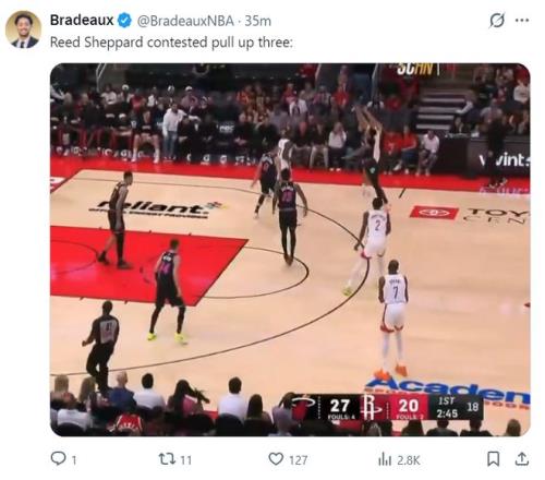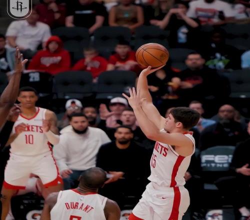 正如乌度卡说的那样,上一场大胜老鹰的先发阵容会继续沿用6-7场,那么谢泼德就继续先发,他没有让乌度卡失望,他额三分球是越投越有信心,距离三分线一步迎着防守都能进。