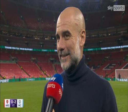 率队在英格兰联赛杯决赛2-0击败阿森纳乐成夺冠之后,曼城主教练瓜迪奥拉接受了来自天空体育的采访 。