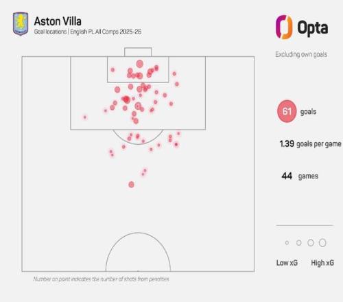 据著名数据统计机构Opta统计 ,阿斯顿维拉本赛季已在禁区外打入18球 ,该数据冠绝五大联赛。