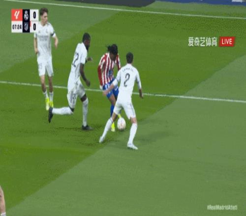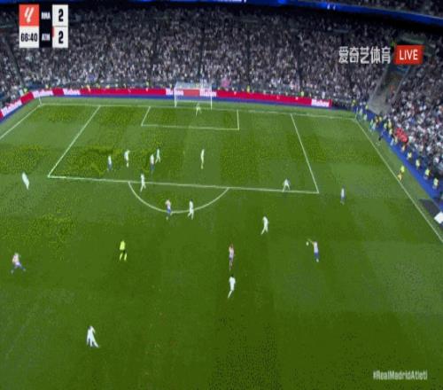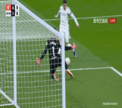 第31分钟,巴尔韦德插入禁区横传,皇马中路包围慢了一些。