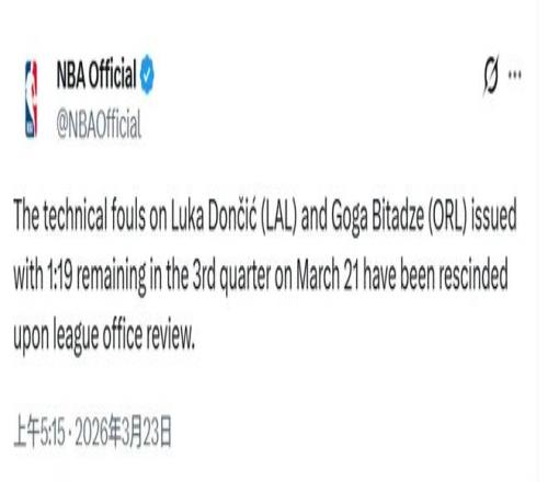 NBA宣布:作废东契奇的第16次手艺犯规。