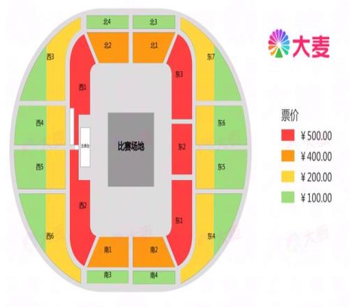本场角逐为B类赛事,票价共分为500元、400元、200元、100元4档,详细座位分区可审查下方票区图(主队近东1区,客队靠东3区),请列位球迷按需购置。