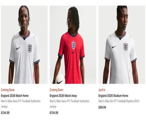 邮报:英格兰队天下杯球衣售价134.99英镑,创史上最贵纪录