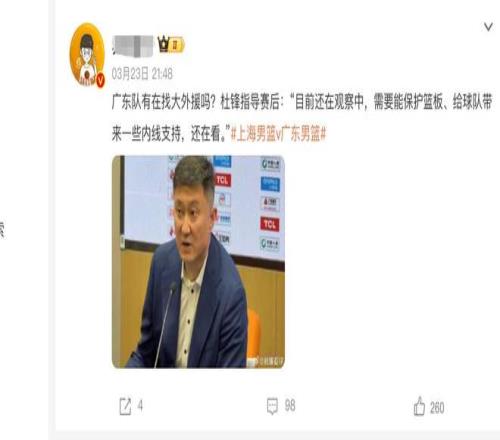 ÔÚÈüºóµÄ²É·Ãµ±ÖÐ £¬¶Å·æÔÚ×ܽáÕû¸öÇò¶Ó·ºÆðÁËһЩÎÊÌâÖ®ºó £¬Ò²ÖصãÌáµ½ÁËÍâÖúÕâÒ»·½ÃæµÄÈËÑ¡¡£Ëû±¬ÁÏÏÖÔÚÇò¶Ó»¹ÔÚÎïɫеÄÍâÖú £¬Ï£ÍûÄܹ»Ñ°ÕÒеĴóÍâÖúÀ´×ÊÖúÇò¶ÓÌáÉýÄÚÏß·½ÃæµÄʵÁ¦ £¬±£»¤ºÃÀº°å¡£ÒÔÊÇ´Ó¶Å·æÍ¸Â¶µÄÕâ¸öÐÂÎÅÎÒÃÇ¿ÉÒÔÏàʶµ½ £¬Öì·¼ÓêËûÃÇ×ÅʵÕýÔÚÆð¾¢µÄѰÕÒȫкÏÊʵĴóÍâÖú £¬×ÊÖú¹ã¶«ÄÐÀº½â¾öÄÚÏßµÄÕâÒ»¿é¶Ì°å¡£
