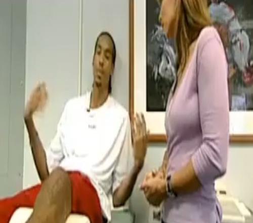 µ±¶ÓÓÑÃÇÔÚ³¡Éϱ¼³Ûʱ £¬ËûÔÚÀíÁÆÊÒÓÃÏðÆ¤½î¾ÙÐп¹×èѵÁ·¡£